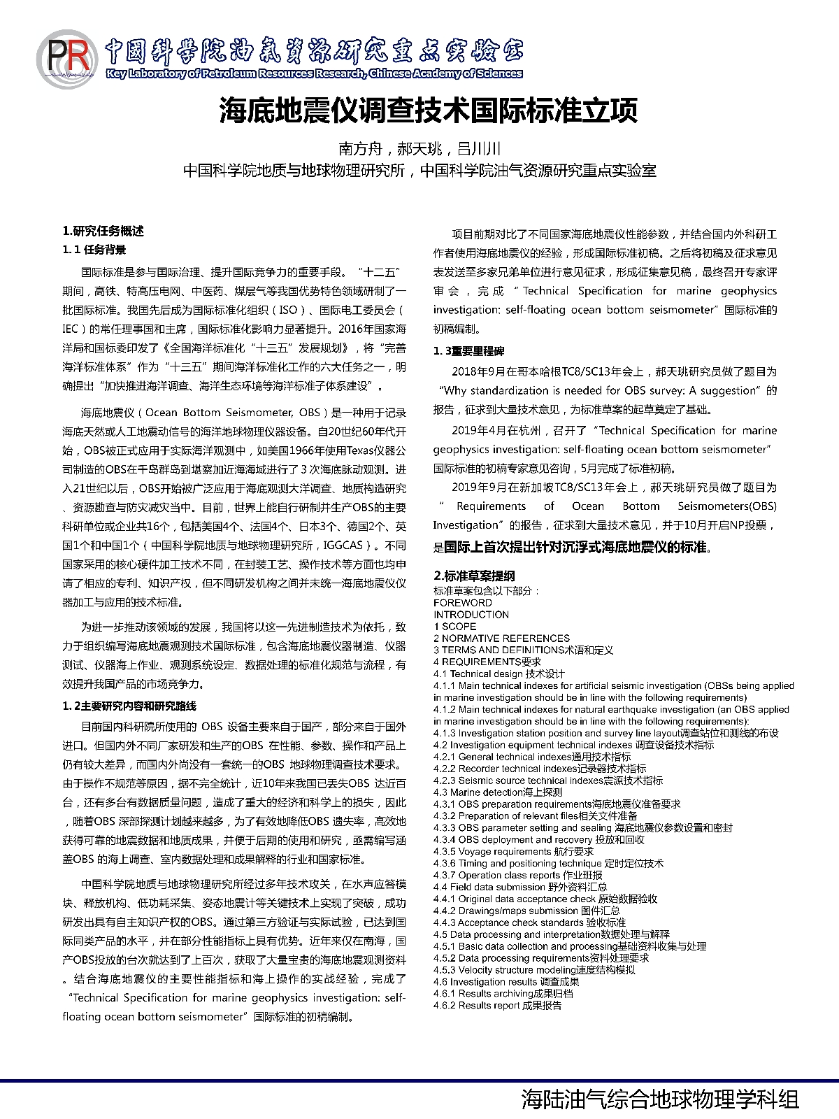 | 南方舟-海底地震仪调查技术国际标准立项 |