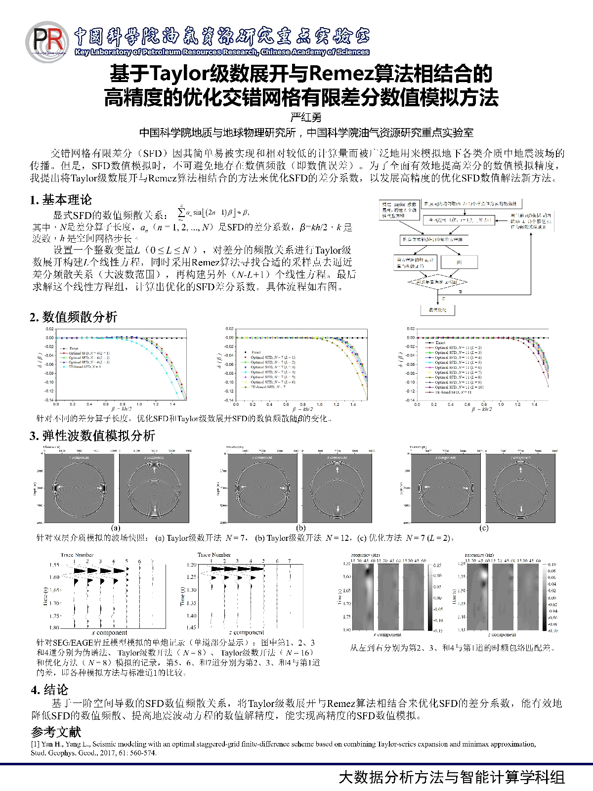 | 严红勇-基于Taylor级数展开与Remez算法相结合的高精度的优化交错网格有限差分数值模拟方法 |