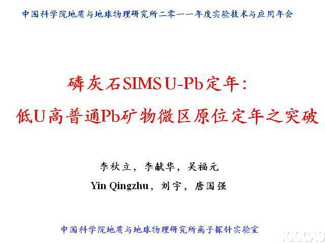 李秋立 离子探针磷灰石U-Pb定年:低U高普通Pb矿物微区原位定年之突破 |