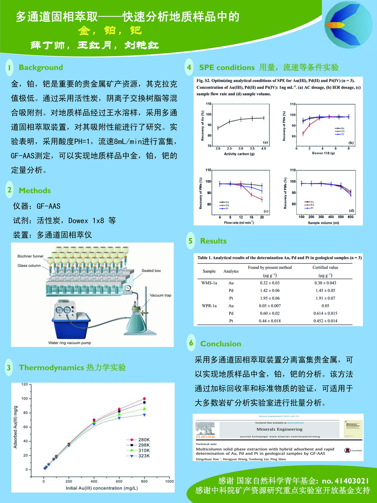 | 伍向阳_岩石物性_珠江口盆地白云深水区岩芯地球物理实验研究 | 薛丁帅_岩矿制样与分析_多通道固相萃取——快速分析地质样品中的金,铂,钯 | |