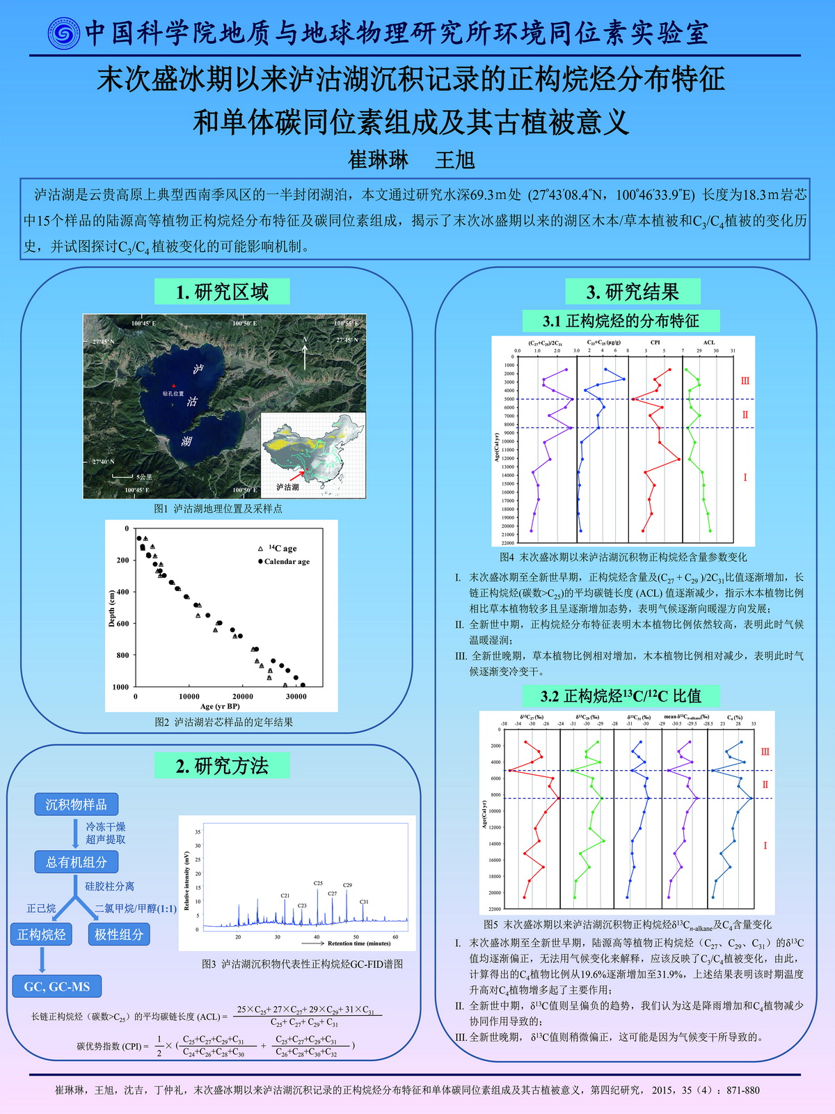 | 崔琳琳_稳定同位素分析_末次盛冰期以来泸沽湖沉积记录的正构烷烃分布特征和单体碳同位素组成及其古植被意义 | 孙文杰_空间环境探测_GNSS电离层检测网初步观测结果 | |