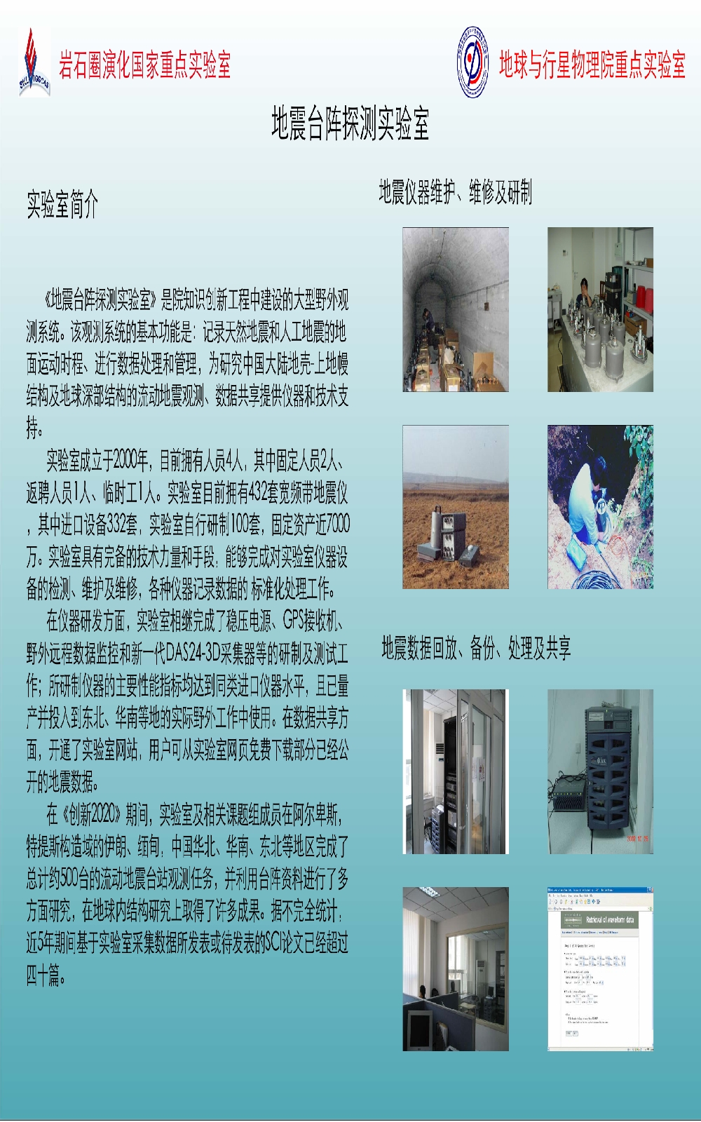 | 14-地震台阵实验室简介 | 14-地震台阵探测实验室测线分布 | 15-空间环境探测实验室介绍 | 16-实验室介绍-水化学与环境 |