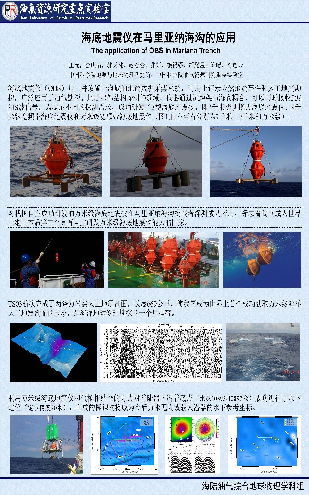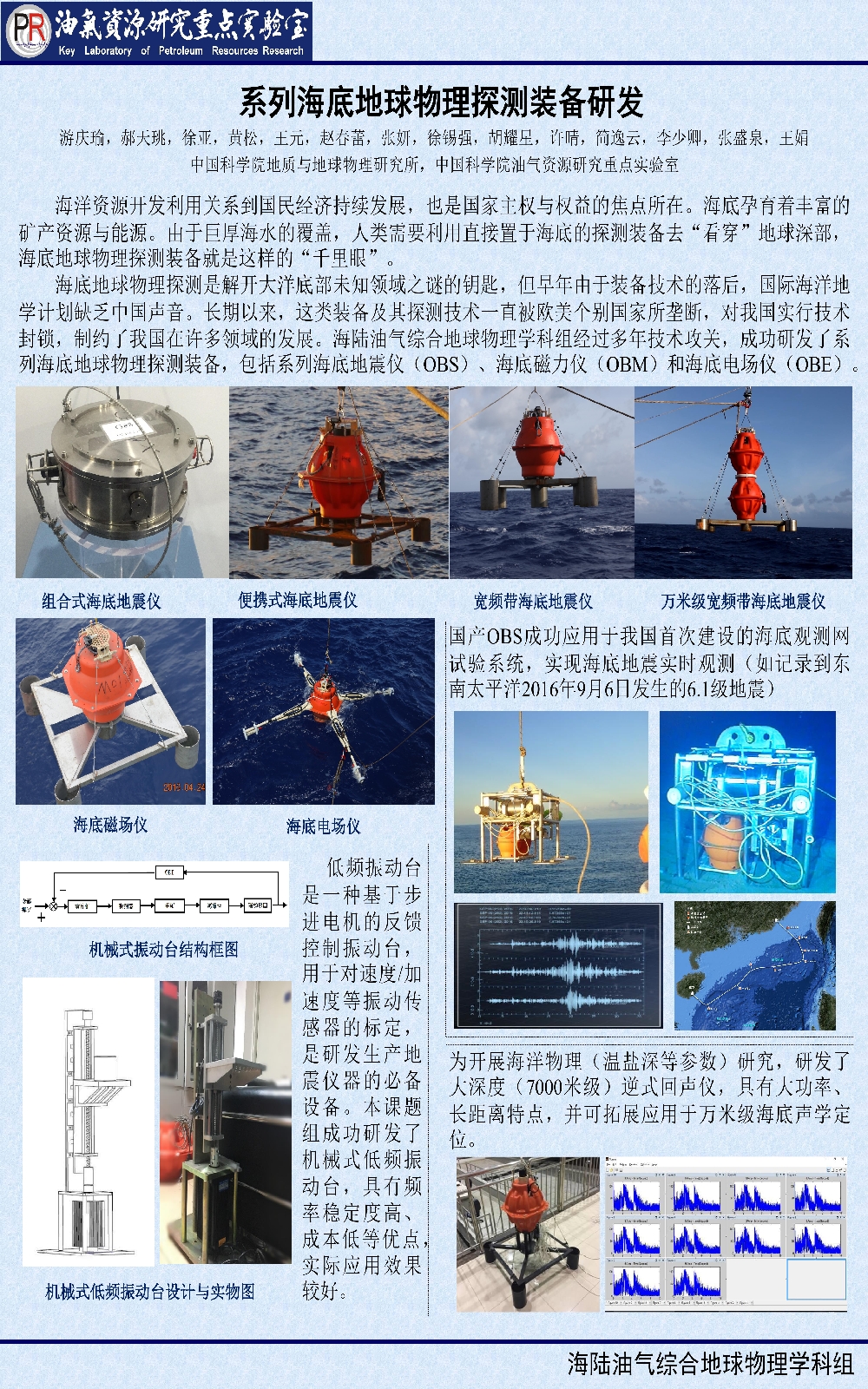 | 电磁探测技术-裴仁忠 | 李少卿_机械式低频振动台研制 | 深层地质导向技术-孙云涛 | 王元_海底地震仪在马里亚纳海沟的应用 |