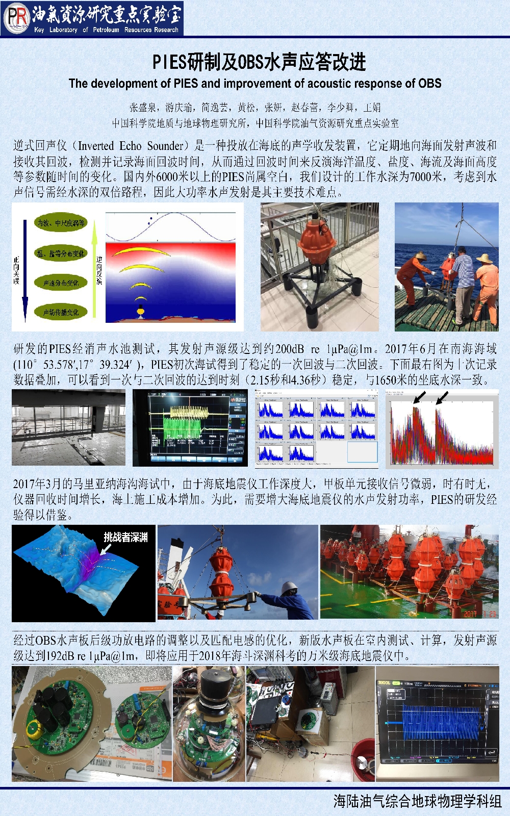 | 游庆瑜_系列海底地球物理探测装备技术研发 | 张盛泉_PIES研制及OBS水声应答改进 | 赵剑阳_组合式海底地震采集节点的拓展应用 | 智能导钻系统集成与测试研究-付长民 |
