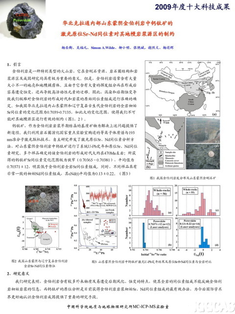 —— 华北克拉通内部山东蒙阴金伯利岩中钙钛矿的激光原位Sr-Nd同位素对其地幔岩浆源区的制约