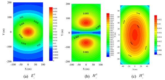 图1 近源瞬变电磁场在早期1e-5s的分布