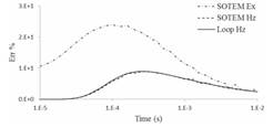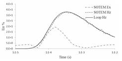 图2 近源瞬变电磁场响应随时间变化的差异比较(回线源在点(0,0),SOTEM在点(0,80)) a 高阻异常 b 低阻异常