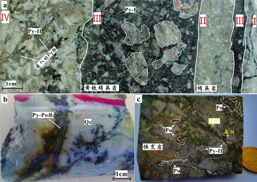 笏山金矿是近几年在蓬莱-栖霞成矿带内新发现的一个大型金矿床,其具有独特的两期金矿化特征,即早期的蚀变岩型金矿化和晚期的黄铁矿-磁黄铁矿脉型金矿化(图1)。早期蚀变岩中发育与含金黄铁矿、绢云母等矿物伴生的热液独居石,其“环带状”交代残余结构表明,热液独居石是富CaPREE的流体与长石发生交代反应的结果。获得独居石的U-Pb年龄为120 Ma,代表了矿区的早期成矿时限(图2)。考虑到独居石原位Nd同位素数据与围岩玲珑花岗岩相一致性,笏山金矿区的成矿流体和成矿物质来源具有壳源混合特征。