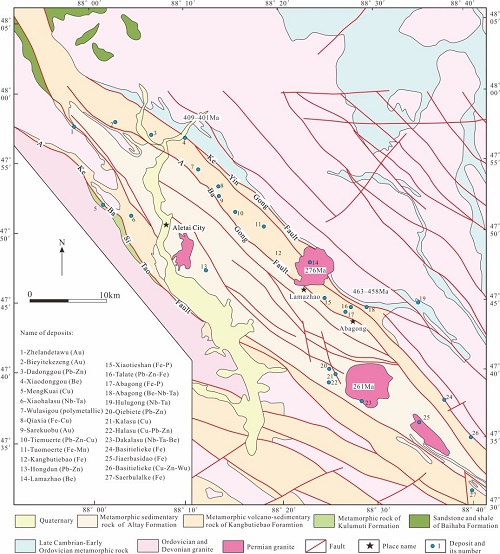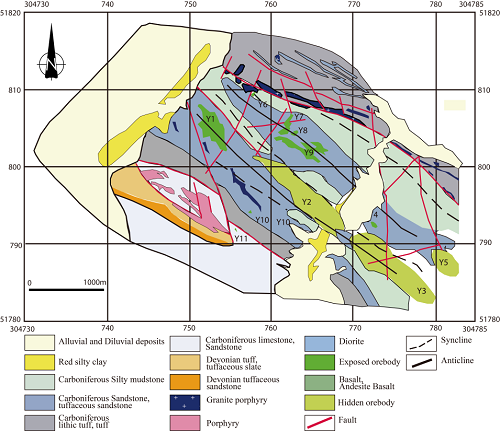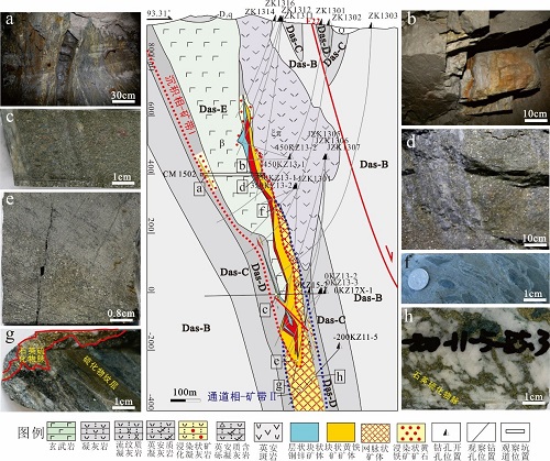 | 通过对阿舍勒出露的地层进行重新研究,辅以锆石U-Pb定年的方法,重新建立了阿舍勒矿区地层格架。确定阿舍勒组可分为5个序列,从下至上依次为:硅质凝灰岩层(Das-A)、英安质层(Das-B)、流纹质层(Das-C)、矿层(Das-D)、及玄武岩层(Das-E)在矿区呈整合接触(... 查看详细>>>> |