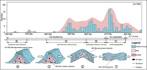 资助课题编号:2017YFC0601205 大陆地壳并不是一个完全刚性的块体,在其内部存在显著的岩性、流变性及热结构的不均一性。其中,深熔作用对地壳流变性的改变影响巨大。实验岩石学研究表,极少量的熔体 (大约7 vol%) 就可以使大陆地壳流变性发生显著的改变,并易于发生... 查看详细>>>> |