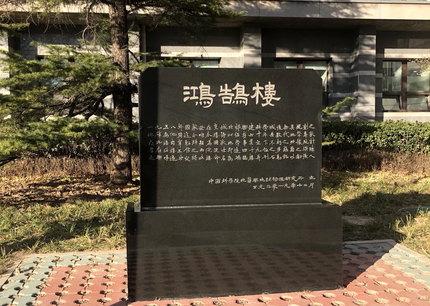 “地6楼”边伫立着“鸿鹄楼”石碑