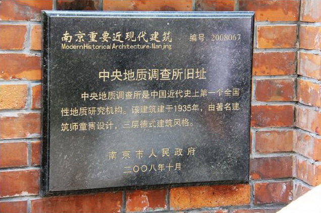 南京中央地质调查所旧址名牌
