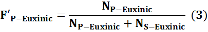 在利用细粒碎屑岩重建古海洋环境时,研究者通常把注意力集中在缺氧环境下形成的黑色页岩上,而对氧化条件下形成的细粒碎屑沉积岩的样品关注度不够。因此,为了避免这种现象对计算F值造成影响,公式(1)中分母没有使用NOxic。经测试,使用或不使用NOxic不影响重建的时间演化趋势。为了量化缺氧带的缺氧程度/持续性,以及硫化盆地的硫化强度/持续性,分别定义F'CPOMZ和F'P-Euxinic(注意:区分F与F'):