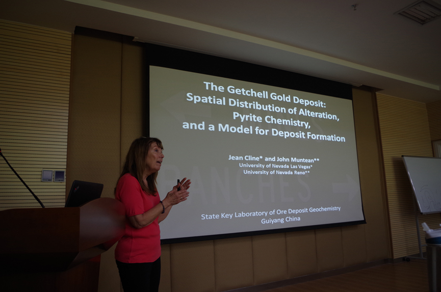 应中国科学院地球化学研究所矿床地球化学国家重点实验室夏勇研究员及“地球演化与成矿高级学术论坛”的邀请,内华达大学拉斯维加斯分校Jean Cline教授于2016年5月21日-6月5日访问了地化所。Cline教授于5月23日下午参加了我所博士研究生谢卓君的博士论文答辩(Cline教授为实验室博士研究生谢卓君在美国联合培养博士期间的外方导师),并于6月1日上午做了题为“Ore Deposition in Carlin-type Gold Deposits: Studies of Sample Transects from Dead Rock to High-grade”,“The Getchell Gold Deposit: Spatial Distribution of Alteration, Pyrite Chemistry, and a Model for Deposit Formation”和“How to write a manuscript for publication in an International Journal”三个学术报告。报告由矿床地球化学国家重点实验室张兴春研究员主持,所内部分科研人员与研究生参加了本次报告会。