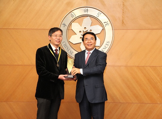 1月29日上午,2014年度中国科学院杰出科技成就奖颁奖仪式在中国科学院举行。我所朱日祥院士、张宏福研究员与杨进辉研究员领衔的“华北克拉通破坏研究集体”荣获中国科学院杰出科技成就奖。中国科学院院长、党组书记白春礼院士为研究集体获奖代表杨进辉研究员颁奖。