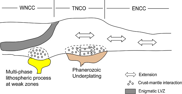 综合地球物理,地质和岩石、地球化学等多学科观测资料表明,显生宙岩石圈活化过程显著影响了华北克拉通东部地壳,特别是中、下地壳,克拉通东部不仅经历了岩石圈地幔的大规模破坏,还发生了地壳的强烈改造和减薄;岩石圈活化效应明显延伸到了中部带,但对西部的地壳结构和性质影响相对较小。