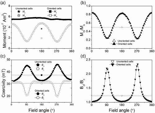 图2 定向AMB-1全细胞样品的磁滞参数随测量角度变化