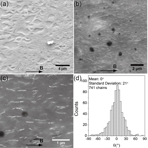 图1 趋磁细菌AMB-1定向样品的扫描电子显微镜照片