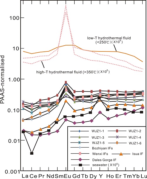 上述研究成果近期发表在国际前寒武纪研究权威期刊Precambrian Research (Wang et al. Petrology and geochemistry of the Wangjiazhuang banded iron formation and associated supracrustal rocks from the Wutai greenstone belt in the North China Craton: Implications for their origin and tectonic setting. Precambrian Research, 2014, 255: 603-626)和国际SCI期刊Journal of Asian Earth Sciences (Wang et al. Source characteristics of the ~2.5 Ga Wangjiazhuang Banded Iron Formation from the Wutai greenstone belt in the North China Craton: evidence from neodymium isotopes. Journal of Asian Earth Sciences, 2014, 93: 288-300)上。