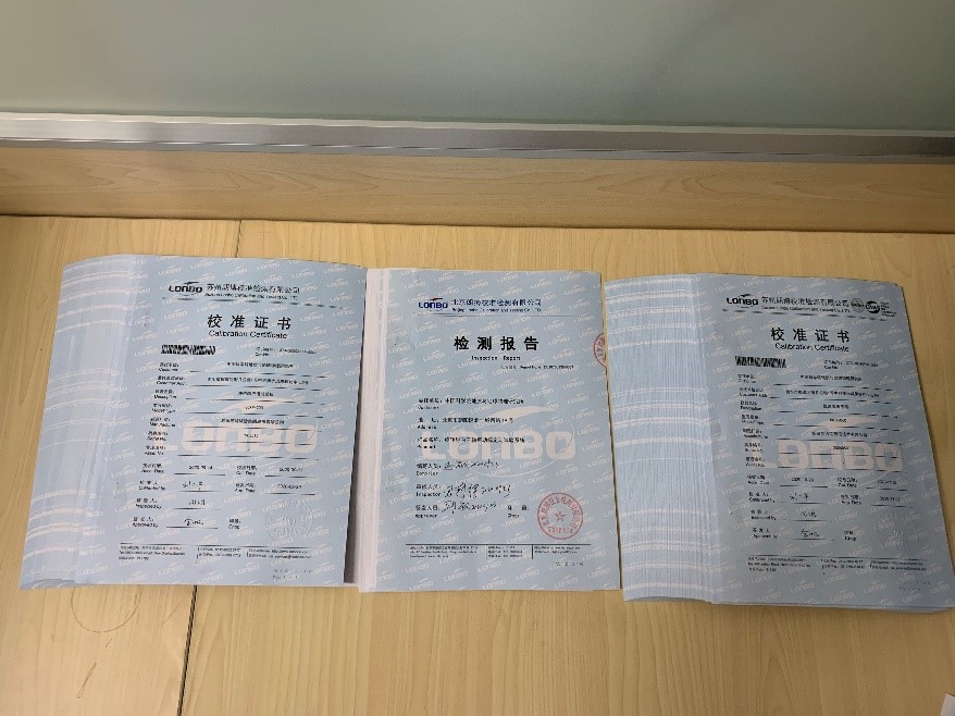校准/检测结果证明所有试验设备均达标。
