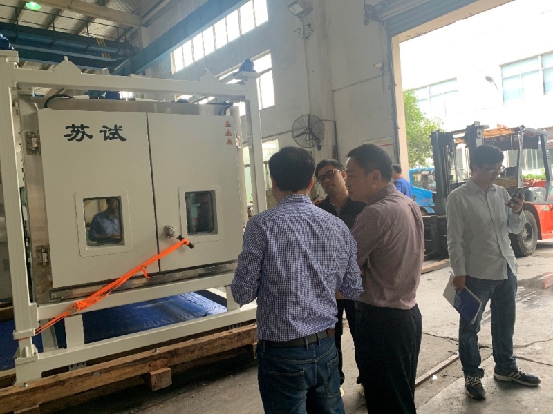 2021年10月14日至15日,项目五课题二子课题1“可靠性测试与标定平台”课题组组织裴仁忠工程师、赵丹工程师、资产处刘德庆处长和王镇远主管等4人前往苏州苏试试验集团股份有限公司(以下简称苏试)进行智能导钻井下仪器快速温变环境试验系统出厂验收。